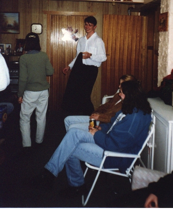 Wades house was the venue for the only party that Steve, Jasmine and Carolynn were going to attend. For these reasons it was a very good night because we all got to meet some or all of this group for the first time. Unfortunately there was a thing called the Rugby on (which Australia won - Wohoo). There also was a bottle of schnaps, well not for long anyway. Withing five minutes the whole bottle had been drunk, and the two main culprits, Sinj and Jason were on the rampage for some more alcohol. This was found in the form of some Scotch, and some Tequilia, and some Ouzo and most probably a lot of other ones as well. By about 11:00 the toilet was a mess as Jason hadn't quite managed to find his aim when throwing up and had done it all over the floor. Also he had unfortunately not quite managed to keep on his feet either and in his efforts to keep some sort of verticle posture he grabbed at the closest possible thing. Unfortunately Wade's shower curtain, although it was single at the time felt that it would not be able to support J for the rest of the night and relented its grip on life.