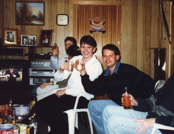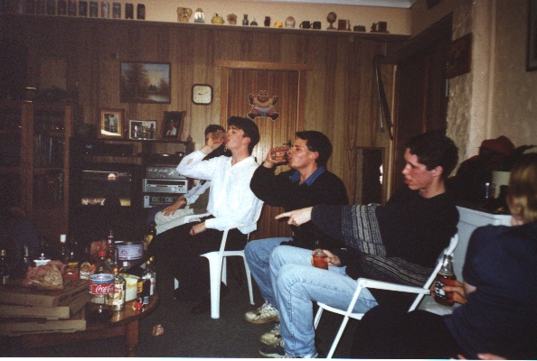 Leaving the damage in his wake J then staggered outside for some fresh air. However he did not get much fresh air before the pungent smell of vomit entered the air. After a couple of hours of solid throwing up (Evidently it was some sort of flouro green colour by the end) everyone left. That is every conscious person left. Sinj and Jason were left to try and sleep it off. Well apart from Sinj waking Wade's parents by using there bathroom at some ungodly hour of the morning and also throwing up on the host's doonah, he was a bit better in the morning. With a bit of sneaky manouvering Wade managed to sneak the doonah off to the dry cleaners without telling his parents. Jason was however a different story and after being kicked out of the house by Wade's parents early the next morning they merry couple progressed to Tom's house where J threw up again. And again, this time at 2:00 in the afternoon just as he was about to leave to go back to Hobart.